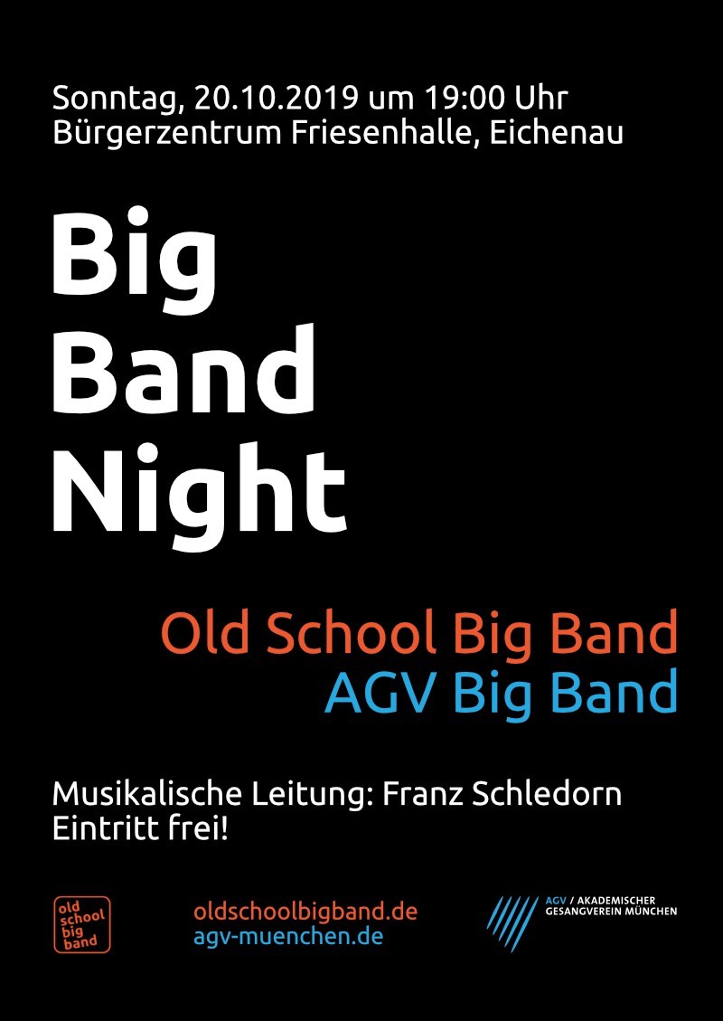 Zwei Big Bands, fast 40 Musiker·innen, ein Konzert. Das erwartet Sie am Sonntag, den 20.10.2019 um 19:00 Uhr (Einlass 18:30 Uhr) in der Friesenhalle in Eichenau. Zum Abschluss des Jubiläums-Jahre... Mehr